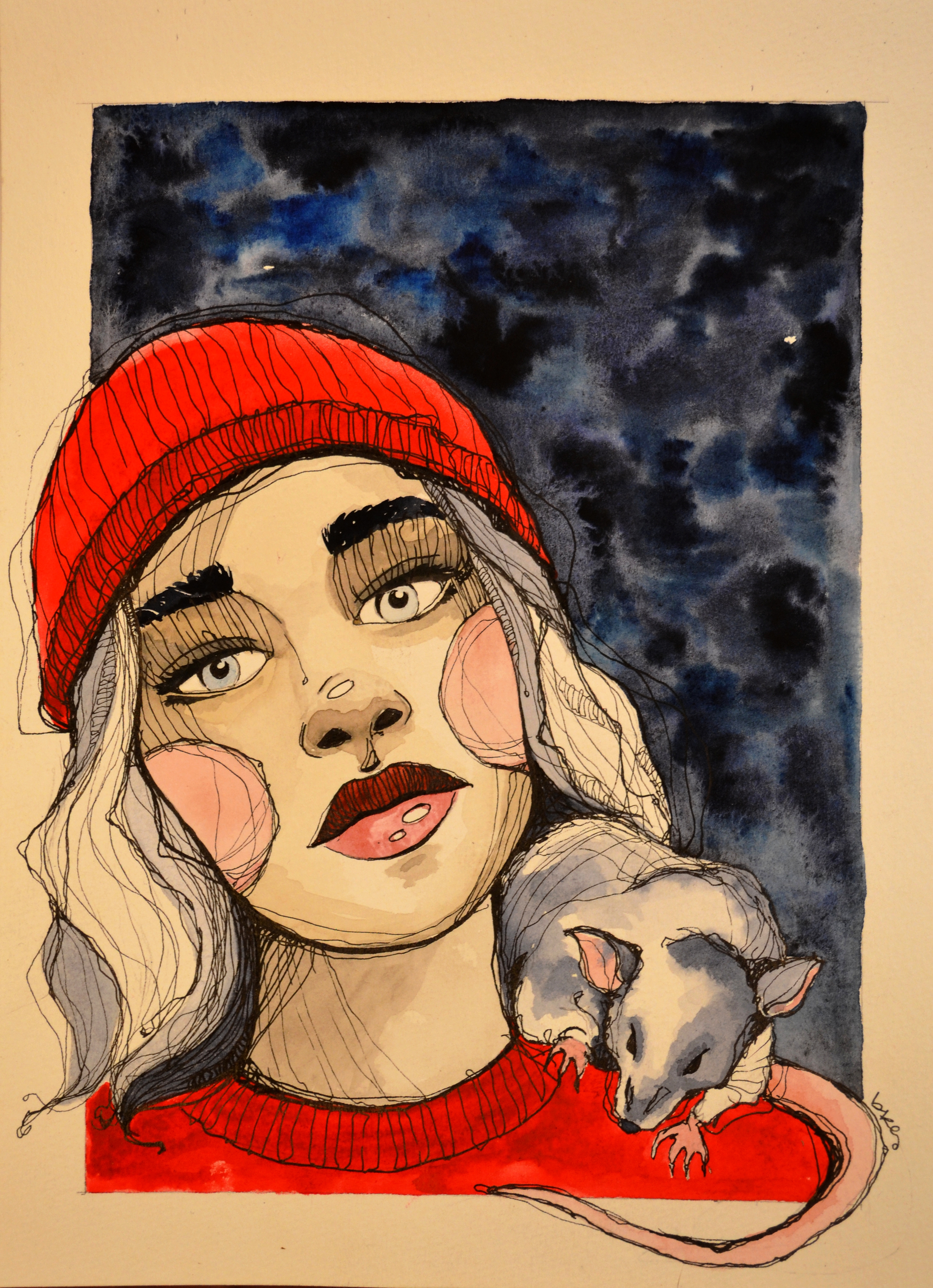„За мене илустрацијата е начин на изразување и раскажување на една лична приказна. Во речиси секое дело настојувам да преплетам една своја интимна игра со процесот на креирање, а воедно да ги искажам своите визии на еден посебен медиум како илустрацијата. Навикнати сме да ги изразуваме своите мисли со зборови и реченици, меѓутоа сликата претставува еден поразличен израз во кој истите симултано се преведуваат во линии и бои и добиваат еден сосема поинаков тон. Инспирацијата најчесто ја црпам од циркусот, театарот, маските и костимот кои ги сметам за еднакво сродни со ликовната уметност. Работејќи во секторот на костимографијата и сценографијата, за мене е сосема нормално да позајмувам и си поигрувам со мотиви од таа околина, а она што најмногу ме привлекува се изопаченоста и несекојдневноста на маската и костимот. Оттаму, моите илустрации ја носат истата тенденција да ја пренесат атмосферата, бојата и емоцијата на отворената сцена и нејзината исклучителна природа.“