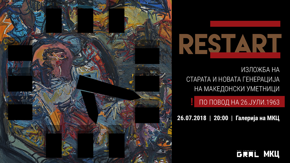 На 26 јули, како дел од одбележувањето на 55-годишнината од скопскиот земјотрес, во МКЦ ќе биде поставена изложбата на старата и на новата генерација македонски уметници RESTART. Оваа изложба претставува извесен генерациски пресек, кој го бележи развојот на македонското современо сликарство, во кое се отсликани условите што го предодредиле од неговите почетоци до денес, низ делата од колекцијата на Галеријата ГРАЛ.