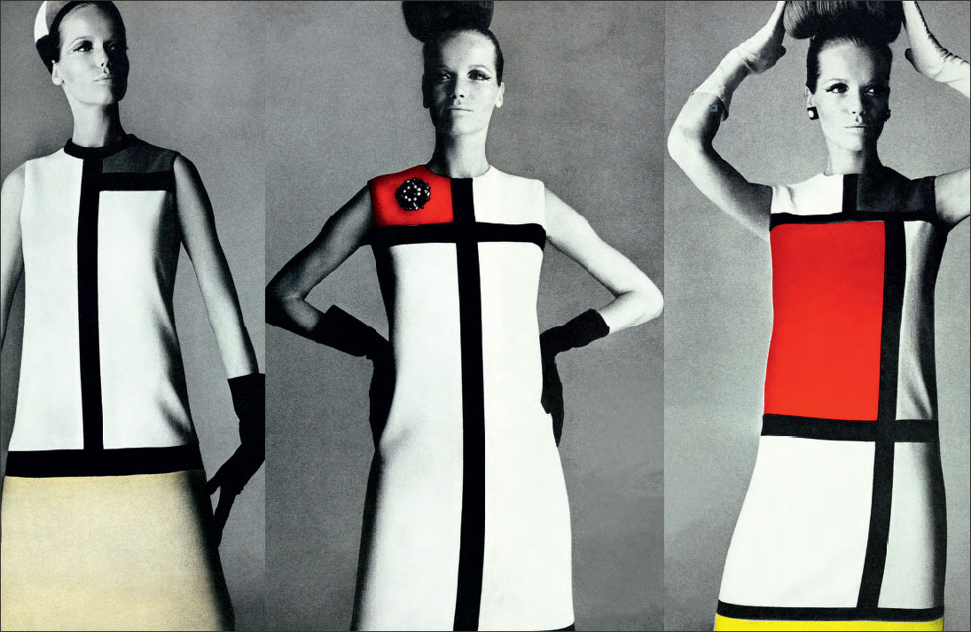 Веројатно исто толку познат како и неговите дела е фустанот Мондријан од „Колекцијата Мондријан“ на Ив Сен Лорен од 1965 година. „Сликарското платно што се носи“ го плени светот со концептуалниот дизајн што ги одразува апстрактноста и едноставноста. Подоцна и Мјуча Прада, која исто така е голем почитувач на фустанот Мондријан, го вгради истиот дизајн во својата колекција наречена AW11.