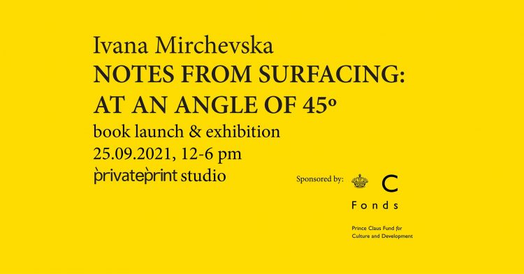 PrivatePrint Studio ја започна соработката со Ивана Мирчевска на почетокот на оваа година и таа подразбираше создавање на уметничка книга и развој на изложба како еден проект поврзан во целина. Поаѓајќи од феноменологијата, концептот на Мирчевска предлага посебен агол на гледање, агол од 45 степени, којшто е лоциран во просторот помеѓу телото (замислено како оска ‘y’) и нашата перцепција (оска ‘x’). Аголот од 45 степени е местото каде што тие се сретнуваат, каде што тоа што се гледа и тоа што се допира е едно исто, каде што тие се обединети во желбата да се разберат еден со друг. При работата на овој проект Мирчевска развива метод на гледање (surfacing) преку кој се предизвикуваат нормираните претпоставки за телото и за нашата перцепција и се раскршуваат доминантните модели на ориентацијата.