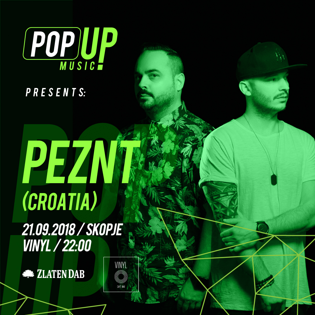 Инаку, со своите синглови PEZNT дојдоа до врвот на разните Traxsource и Beatport топ-листи, а со диџеј сетовите ги разиграа фановите на многу фестивалски и клупски подиуми, вклучувајќи ги и Defected Croatia festival и престижниот Amsterdam Dance Event. Се чини дека PEZNT доаѓаат во Скопје баш во моментите кога се најблиску до врвот на светската електронска сцена. Ве очекуваме во Vinyl, овој петок, oд 22 часот.