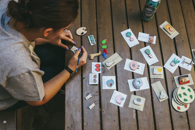 Најмногу работам со дрво и пред некое време внесов и плексиглас. Прво ги цртам дигитално, на компјутер им ги правам формите, потоа следува ласерското сечење и на крај ги земам празните парчиња за да ги бојам. Понекогаш ги премачкувам со лак, но тоа се случува поретко бидејќи сум забележала дека на луѓето повеќе им се допаѓаат кога се мат. И бидејќи користам акрилни бои, материјалите не се размачкуваат.
