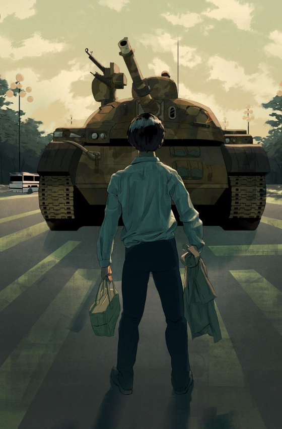 Пролетта 1989 година, кинеските студенти, работници и други демонстранти одржале протести и штрајкови со глад кревајќи го својот глас за демократски реформи во државата. На 4 јуни, движењето се соочило со жесток напад од 200.000 кинески војници испратени да ги запрат протестите. Епилогот на жртви е стотици, а според некои извештаи – илјадници мртви цивили. На 5 јуни 1989 година, еден човек облечен во бела кошула храбро застанал пред колоната од тенкови. Кога тенковите се обиделе да го заобиколат, тој им го блокирал патот. Предниот тенк застанал, а тој се искачил на него и почнал да чука и да му зборува на војникот што го управувал. Кога се симнал, продолжил да им го блокира патот на тенковите, сè додека не се појавиле двајца демонстранти што го одвлекле од улицата. Овој момент бил емитуван во целиот свет, а наскоро човекот во бела кошула станал познат како „Човекот тенк“. Кинеските власти ја оправдале воената операција на Тиананмен, тврдејќи дека зад демонстрациите стојат „контрареволуционери“ манипулирани од странски сили што ѝ се заканувале на стабилноста на земјата. Спомнувањето на жртвите и дискусијата за овој настан, сè уште се строго забранети во Кина. Секој јуни се забележува засилено полициско присуство на плоштадот Тиананмен, а активистите за човекови права се носат надвор од Пекинг. Инаку, идентитетот и судбината на „Човекот тенк“ остануваат мистерија до ден-денес.