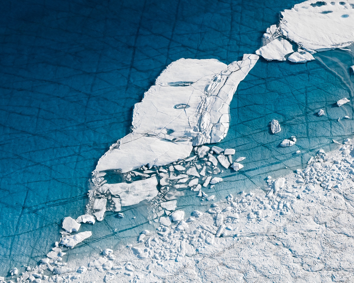 Овие фотографии ќе ве измамат со својата убавина ако го заборавите фактот дека тиркизното синило што доминира на нив е резултат на глобалното зголемување на температурите и ледот што се топи. Преодот од целосно белата боја кон доминантно сината површина е шокантен потсетник дека глобалното затоплување не е апстрактен концепт од иднината, туку конкретна реалност на денешницата.