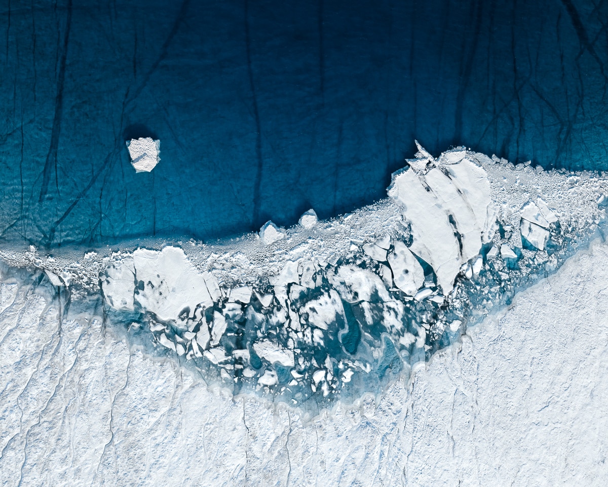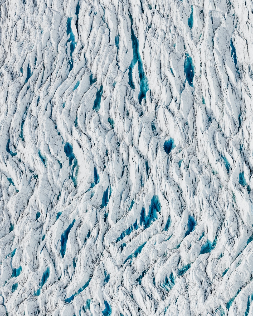 Оваа аерофотографска серија е дело на германскиот фотограф Том Хеген, кој го надлета Гренланд со намера да го види ефектот на индустријализацијата од прва рака, со свои очи, со својот фотоапарат. Масивното ледено тело што покрива околу 80 отсто од површината на Гренланд, сè повеќе попушта под притисокот на климатските промени и се топи. Научниците предвидоа дека покачувањето на температурата за 2 Целзиусови степена потполно ќе го стопи ледот на островот и ќе предизвика зголемување на нивото на морињата за 7,2 метри.
