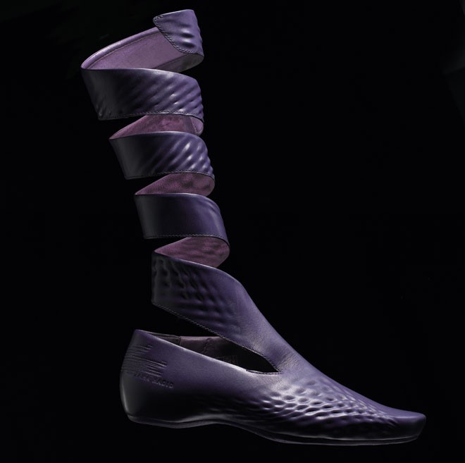 Во 2009 година, Заха Хадид ги реинтерпретираше и унисекс чизмите на „Lacoste“ во дигитален стил. Приспособливата гумена обувка во виолетова, црна и сина боја беше нагласена со испакнати мотиви и дизајнирана како спирала што ползи по ногата.