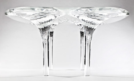 Оваа серија мебел ги помести границите на материјалноста и на формата. Заоблените форми го имитираат процесот на топењето на ледот од глечерите. Хоризонталните делови од столовите нежно се наклонуваат во вертикални потпирачи за да изгледаат како да истураат течност. Моделите се измешани во чисти површини за да ја одразат светлината низ материјалот и да се создаде сенка. Едно од столчињата е обоено во сина боја за да го прикаже изразот на водата која е заробена во времето.